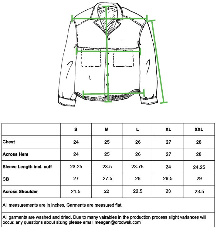 Features: Camp collar, drop shoulders, subtle curved hem, two inseam chest pockets, back box pleat, topstitched seams and genuine pearl buttons.